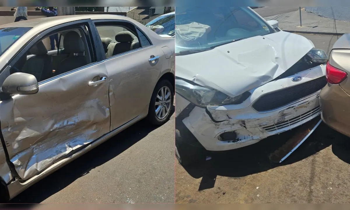 Um acidente de trânsito entre dois carros - modelos Ford Ka e Toyota Corolla - foi registrado no final da manhã deste sábado (11) e deixou dois jovens feridos no cruzamento das ruas Uirapuru e Marcel Cassandre, na Vila Formosa, em Apucarana (PR).