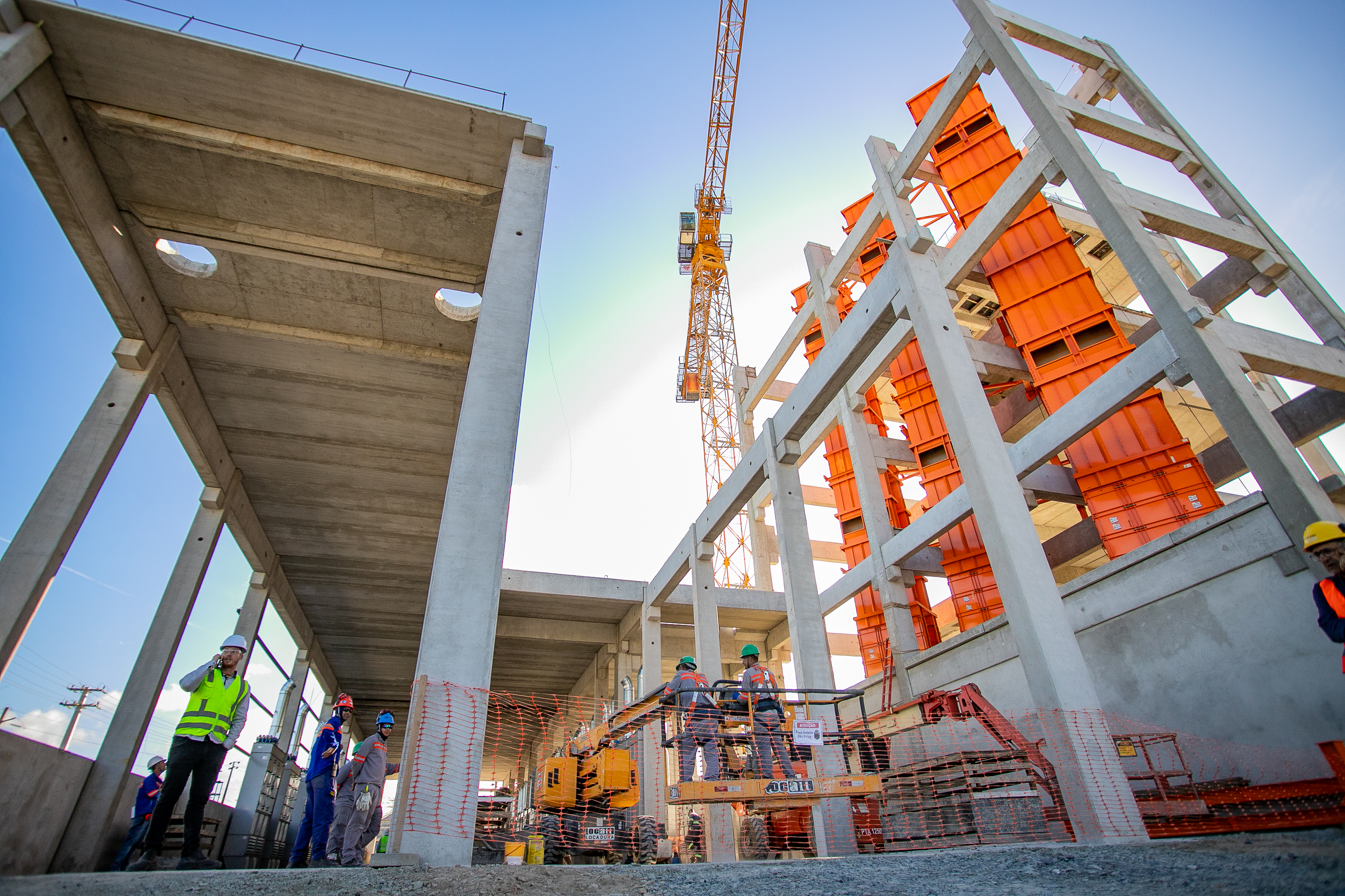 Um dos principais avanços foi a finalização da montagem dos pré-moldados da cobertura da moega. No mesmo local foram instaladas as grelhas metálicas no piso por onde passarão os produtos que sairão dos vagões. Das nove torres, sete já estão com a parte civil (concreto) concluída.
