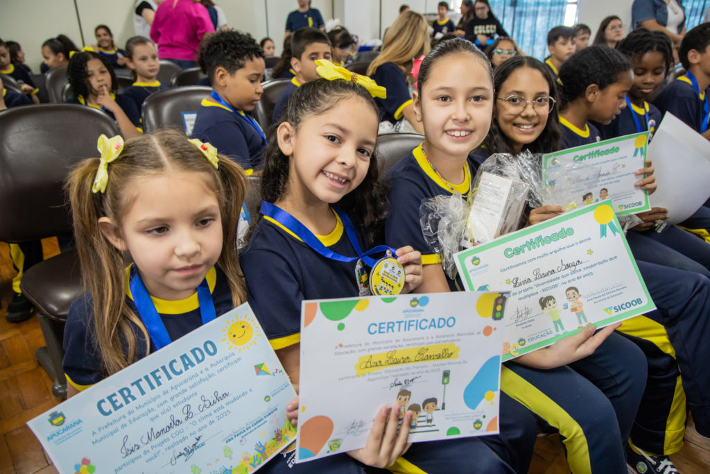 A secretária municipal de educação destacou o envolvimento da comunidade escolar e agradeceu às instituições parceiras. “A premiação é um momento muito especial, quando os alunos saem da escola, vêm à prefeitura, encontram o prefeito, recebem seus certificados e medalhas e celebram o aprendizado. Parabéns aos estudantes, professores, coordenadores e diretores que se dedicaram a esses projetos. Nada acontece sem o esforço coletivo. Agradeço também aos nossos parceiros – Segtran, Guarda Civil Municipal, Agentes de Trânsito, Secretaria de Cultura e Turismo, Cooperativa Sicoob e Controladoria Geral da União – por contribuírem para a formação das nossas crianças”, afirmou.