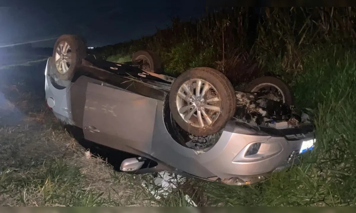 Um casal ficou ferido após o veículo que eles viajavam capotar em uma curva na rodovia BR-376, entre os municípios de Apucarana (PR) e Cambira, na noite desta quarta-feira (19). Eles viajavam em um Hyundai ix 35, que chegou a ficar 'de ponta cabeça' após o acidente.