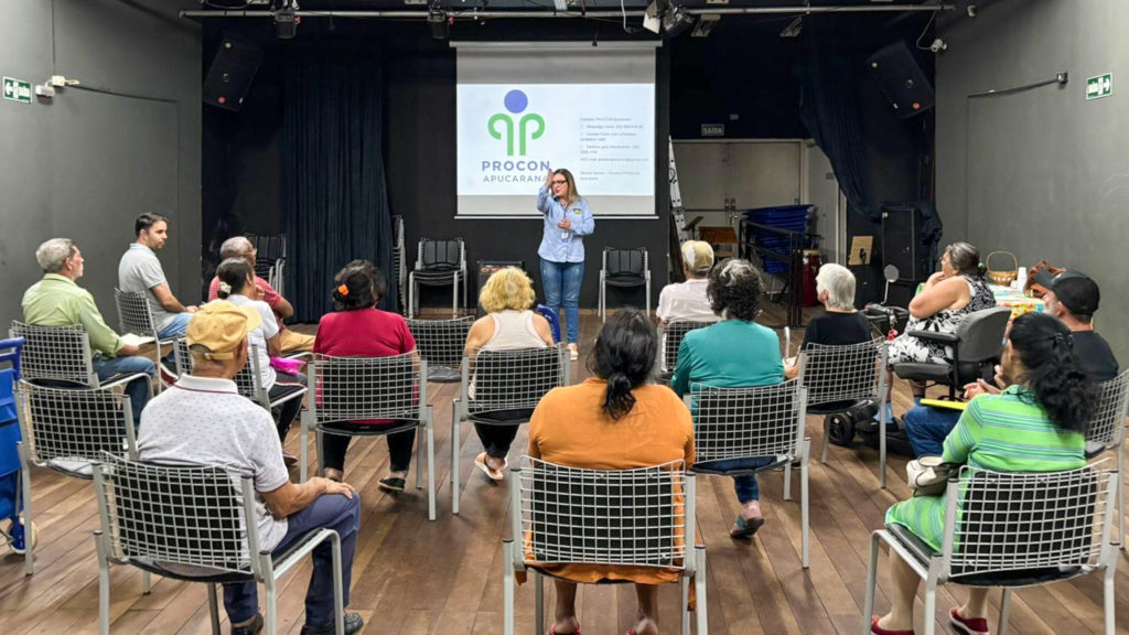 A diretora do Procon de Apucarana, Silvana Verona, conduziu a palestra e fez orientações sobre empréstimos consignados, como funcionam os principais golpes virtuais da atualidade e apresentou noções jurídicas baseadas no Código de Defesa do Consumidor (CDC), reforçando direitos e caminhos para buscar ajuda.