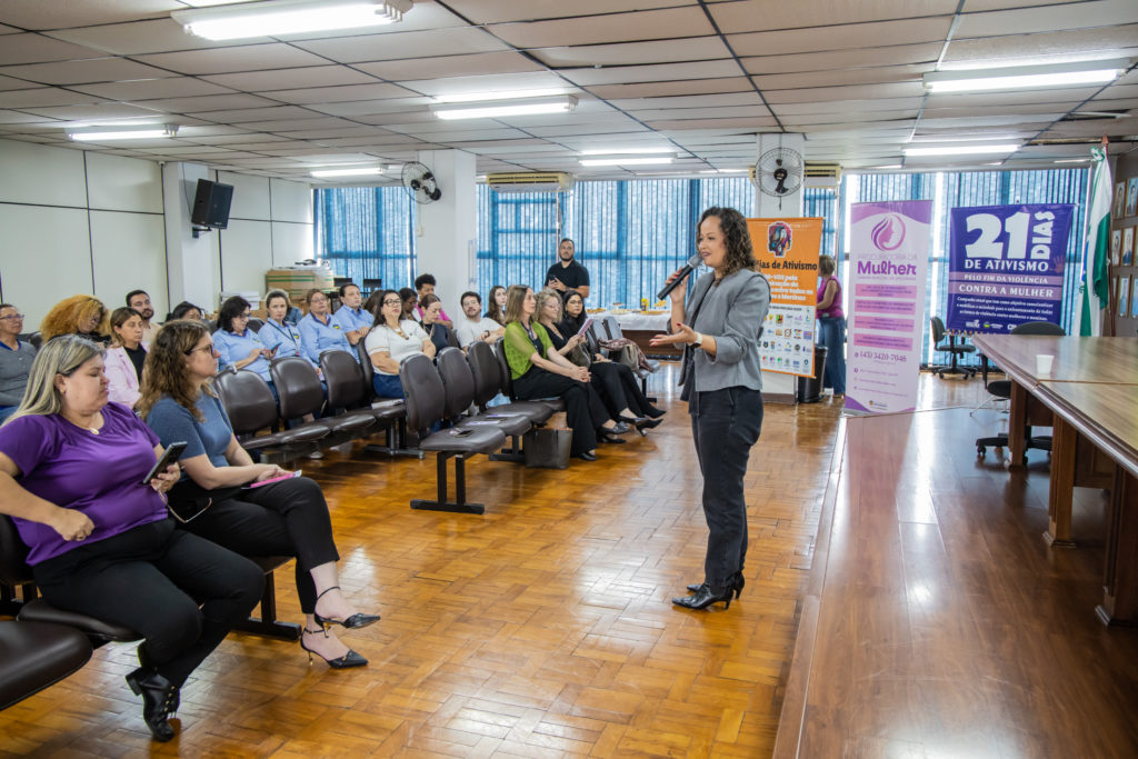A diretora do Centro de Atendimento à Mulher (CAM), Fernanda de Freitas Araújo, apresentou o fluxo de atendimento e os dois departamentos que estruturam o serviço: o de enfrentamento da violência e o de atendimento integral da mulher. “Elas procuram o CAM não apenas por questões de violência, mas também para esclarecer dúvidas sobre relacionamentos, direitos trabalhistas ou questões familiares”, pontuou.