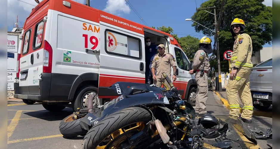 Colisão entre carro e moto no centro de Apucarana mobiliza equipes de socorro