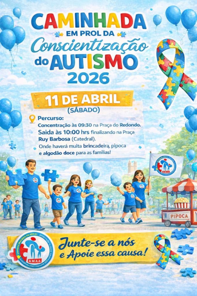 “Parabenizamos todo o trabalho realizado pela AAMA e reafirmamos que nosso compromisso enquanto administração municipal também é construir uma cidade mais inclusiva, humana e preparada para acolher todas as pessoas. A caminhada é um momento de conscientização, mas também de união, de dar visibilidade à causa do autismo e reforçar o respeito às famílias atípicas. Convido toda a população a participar, caminhar junto e fortalecer essa rede de apoio. Cuidar das pessoas, especialmente de quem mais precisa, é uma prioridade da nossa gestão”, afirmou o prefeito.