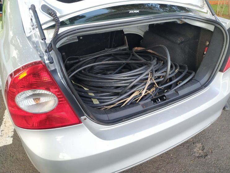 Os suspeitos já foram identificados. Eles abandoaram o carro trancado. Conforme a PM, nos últimos meses, foram registradas mais de 10 ações objetivando o furto deste material.
