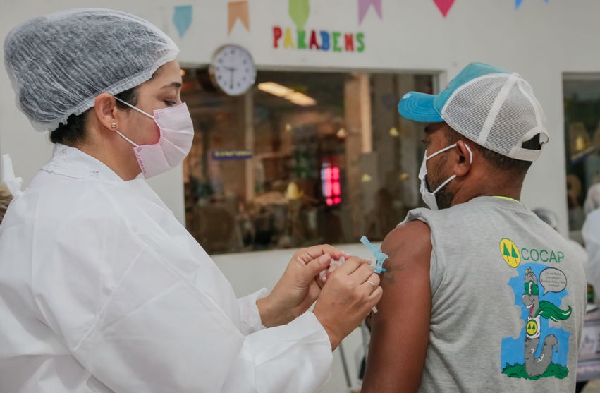 Nesta quarta-feira (23) Apucarana deu continuidade a vacinação contra a Covid-19 de trabalhadores da limpeza pública e da Cooperativa de Catadores de Materiais Recicláveis de Apucarana (Cocap). Esses dois públicos foram vacinados em seus locais de trabalho pelas equipes da Autarquia Municipal de Saúde.