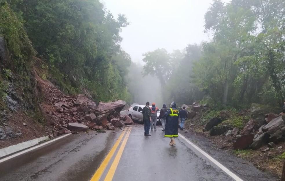 Na Serra, a BR-116 foi totalmente bloqueada, em Nova Petrópolis, após uma queda de barreira. Ninguém ficou ferido.