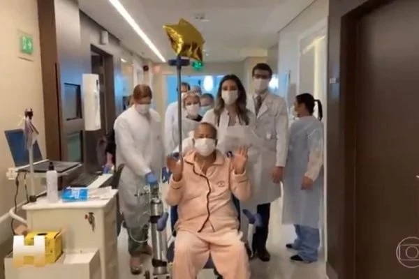 Após passar por cinco intubações em sete meses, para tratar da covid-19, uma mulher de 67 anos recebeu alta médica no hospital Vila Nova Star, zona sul de São Paulo.