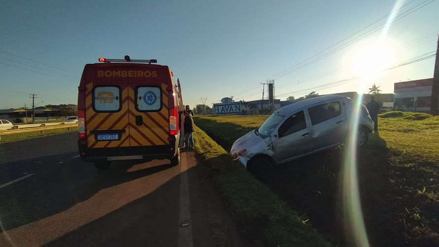 Na manhã desta terça-feira (5), um capotamento de um Sandero foi registrado na BR-369, na Avenida Zilda Seixas do Amaral, próximo à entrada do Clube de Campo Água Azul, em Apucarana.