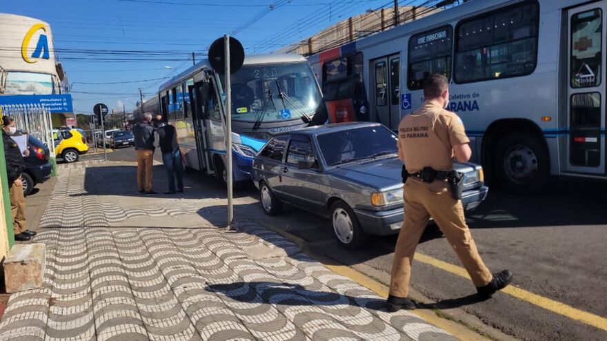 Na manhã desta terça-feira (6), uma colisão traseira entre um ônibus e um carro foi registrada na saída do Terminal Urbano, de Apucarana, na Rua Osório Ribas de Paula.