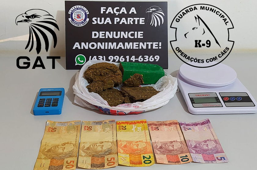 Ao entrar na residência, os guardas viram um homem dormindo e uma porção de maconha, com o peso de 7,3 gramas, junto de uma quantia de R$135 em cima da mesa, além de uma máquina de cartão. O suspeito disse à GM que era tudo de sua propriedade.