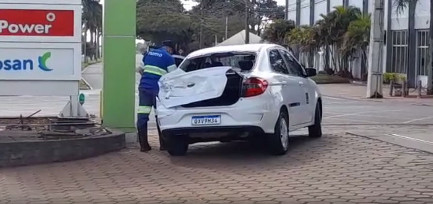 A condutora não sofreu ferimentos. Apenas a parte traseira do carro ficou danificada.