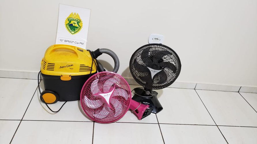 Em um dos endereços, foram localizados dois ventiladores e um aspirador de pó, que foram furtados dias atrás. A vítima reconheceu os objetos, com isso, a dona da casa e um homem foram presos, segundo a PM, ele assumiu o crime.