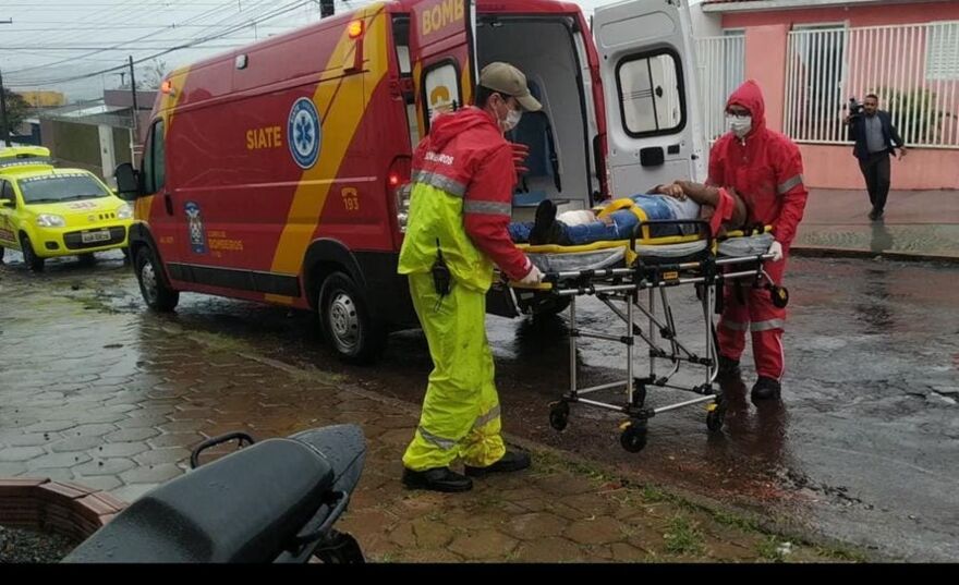 O acidente aconteceu na tarde desta sexta-feira (16) e os Bombeiros foram chamados. Conforme os socorristas, por sorte os ferimentos foram leves. "Sofreu escoriações no pescoço e no joelho e foi levado para UPA. Por sorte não chegou a cortar na hora que ele enroscou o pescoço e ele caiu batendo o joelho", informou os Bombeiros.