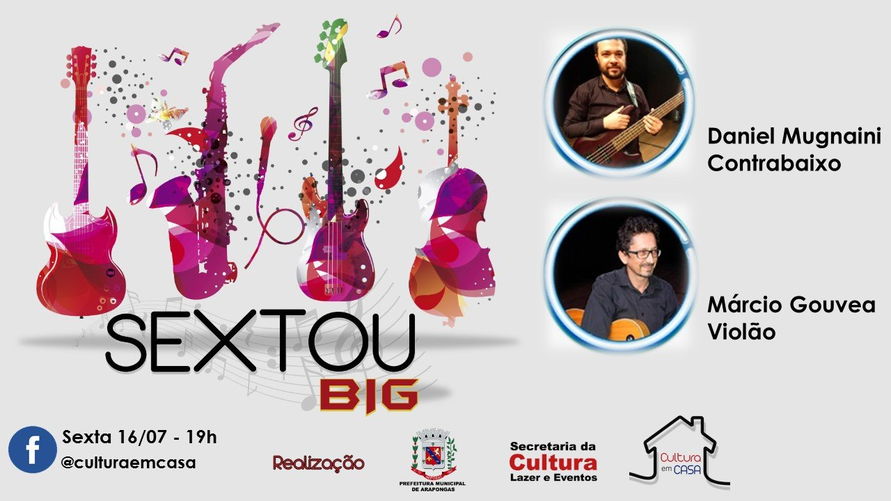 Nesta sexta-feira (16) o programa Cultura em Casa apresenta o “Sextou Big”, produzido pela Big Band de Arapongas e que terá como atração um Dueto de Contrabaixo e Violão.