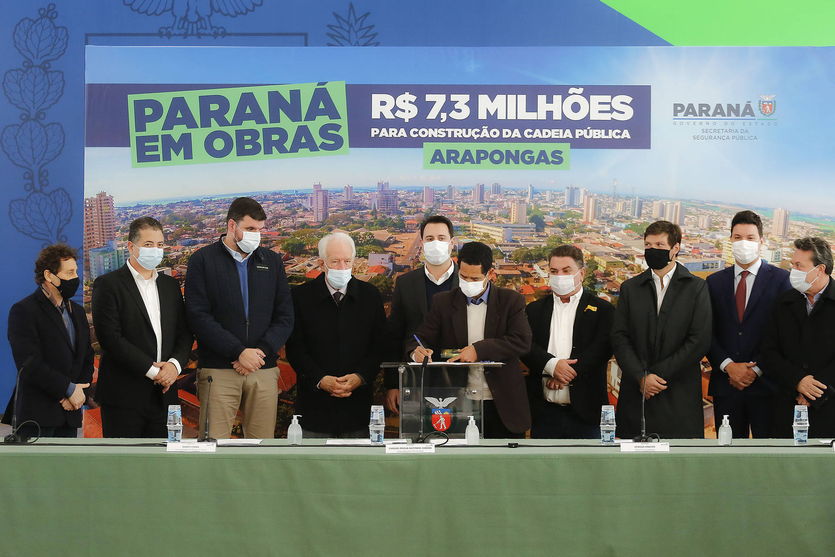 Nesta segunda-feira (19), o governador do Estado, Carlos Massa Ratinho Junior, assinou a ordem de serviço que autoriza a construção da Cadeia Pública de Arapongas. A nova unidade terá 136 vagas para presos masculinos, e visa melhorar o sistema penitenciário estadual. A assinatura foi realizada em um ato no Palácio Iguaçu.