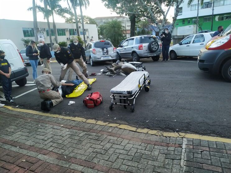 Conforme testemunhas, a condutora do carro estava saindo do estacionamento da Câmara Municipal de Apucarana e o motociclista bateu na traseira do veículo.