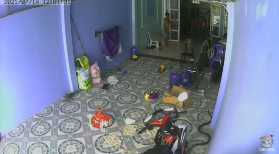 Como é possível ver no vídeo, registrado por uma câmera de segurança, o avô, que estava próximo do menino, percebe quando a serpente invade o quintal da casa e, rapidamente, chama alguém para pegar a criança. O pai do garoto o pega e todos correm para dentro do imóvel.
