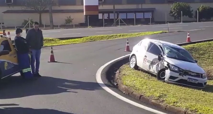 Pelas imagens é possível ver que o carro ficou com a lateral totalmente destruída. A Polícia Rodoviária Federal (PRF) também está no local confeccionando on boletim.