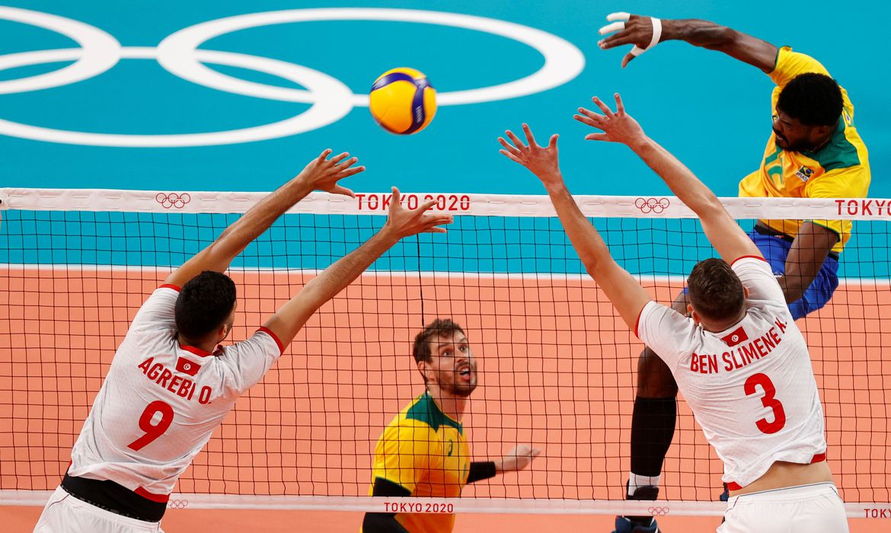 Na noite desta sexta-feira (23), a seleção brasileira masculina de vôlei derrotou a Tunísia por 3 sets a 0 (25/22, 25/20 e 25/15) na estreia na Olimpíada de Tóquio (Japão), na Arena de Ariake.