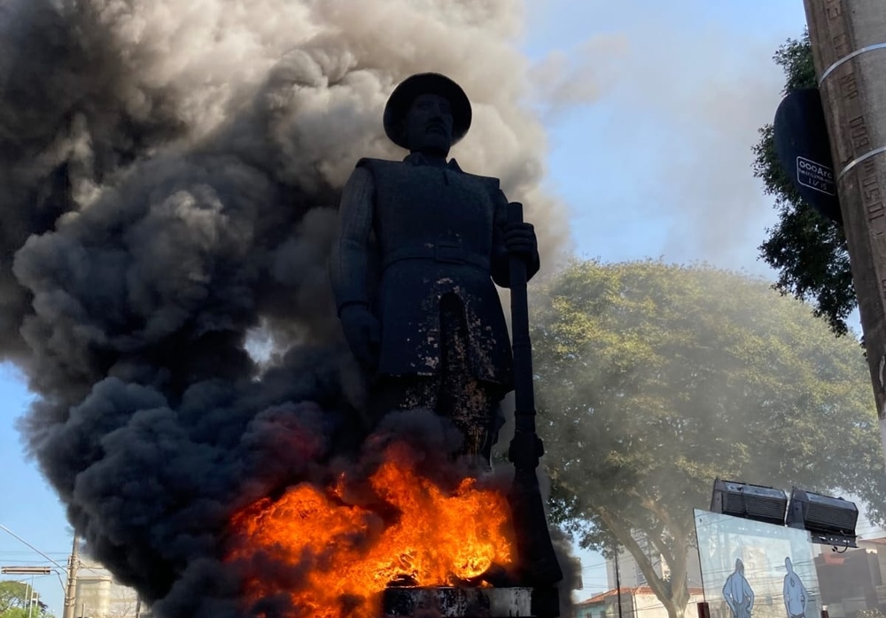 Cerca de 20 pessoas atearam fogo em pneus na base da estátua do Borba Gato, na zona sul de São Paulo, no inicio da tarde deste sábado (24). De acordo com a Polícia Militar (PM), o monumento foi danificado. Tratou-se de uma manifestação e ninguém foi detido. Uma equipe do Corpo de Bombeiros foi enviada ao local às 14h06 e o fogo foi extinto rapidamente. Não houve registros de feridos ou qualquer outro incidente.