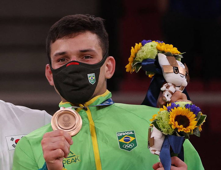 Ele também destacou o apoio dado pela comissão técnica da Confederação Brasileira de Judô. "Lembro de estar falando com a sensei Yuko... Uma vez a gente estava em um treinamento na Itália, em 2018, e eu estava muito cansado, apanhando muito, e ela me levantava e dizia: 'Vamos lá, vamos lá'. Eu me peguei chorando no banheiro e pensando: 'Por que ela não desiste de mim? Às vezes eu mesmo penso em desistir!'. Encontrar ela foi especial, eu acreditei nisso. Preciso agradecer ao meu ídolo João Derly, meus amigos... Todos me deram muito suporte. Estou muito feliz."