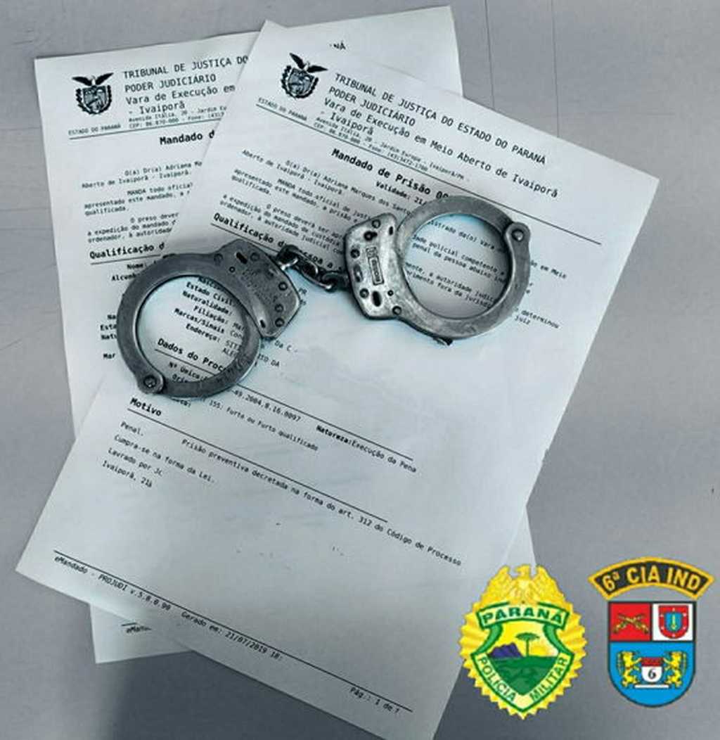 Em Ivaiporã, por volta das 17 horas, a equipe do Serviço de Inteligência logrou êxito em deter um indivíduo de 35 anos, que possuía em seu desfavor um mandado de prisão expedido pela Vara de Execuções Penais de Londrina. O detido foi entregue na 54ª DRP.