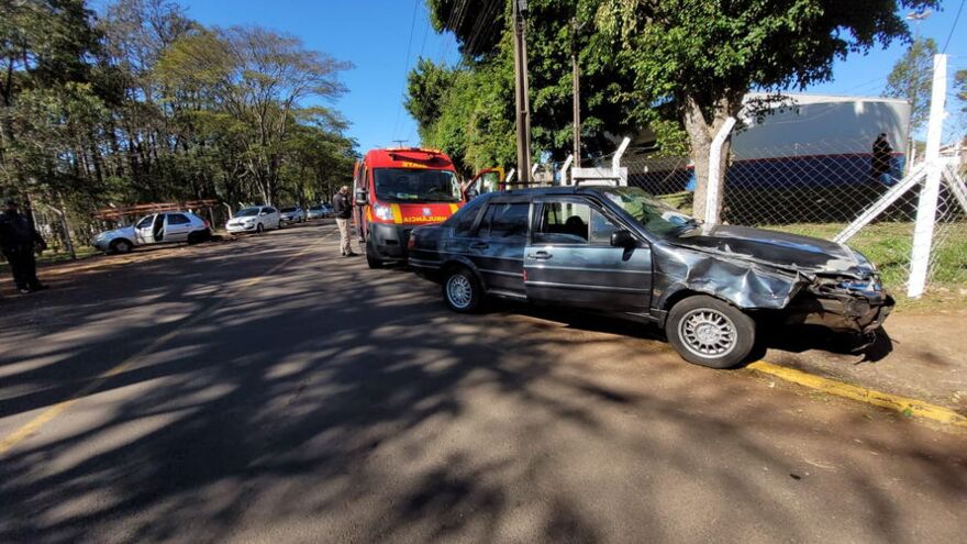 Na manhã desta quinta-feira (29), uma colisão lateral entre dois carros na Rua Marcílio Dias, em frente ao Colégio Agrícola, de Apucarana, deixou duas pessoas feridas. O condutor do Santana seguia na rua quando viu alguns cachorros, tentou desviar dos animais, mas acabou batendo em um Fiat Palio, que estava estacionado em frente à um posto de saúde.Conforme informações do Corpo de Bombeiros, Siate, o motorista sofre ferimentos leves na perna e sua esposa, que também estava no carro, também teve ferimentos leves na cabeça. O casal foi encaminhado pela equipe para a Unidade de Pronto Atendimento de Apucarana (Upa). Fonte TNOnline