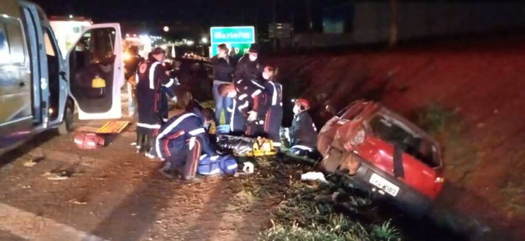 Um acidente na noite deste sábado (31) deixou onze pessoas feridas na rodovia BR-376 no município de Marialva. Testemunhas relataram que os dois veículos seguiam no mesmo sentido pela BR e acabaram batendo contra um barranco.
