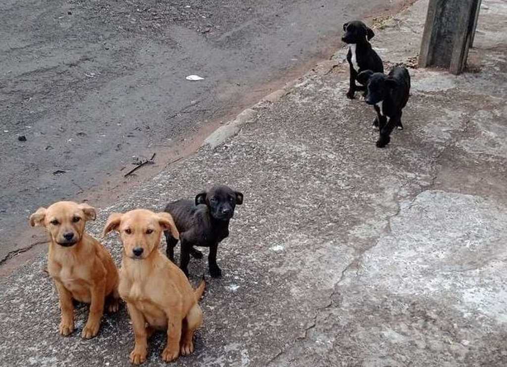 Cinco cachorrinhos foram abandonados juntos em via pública