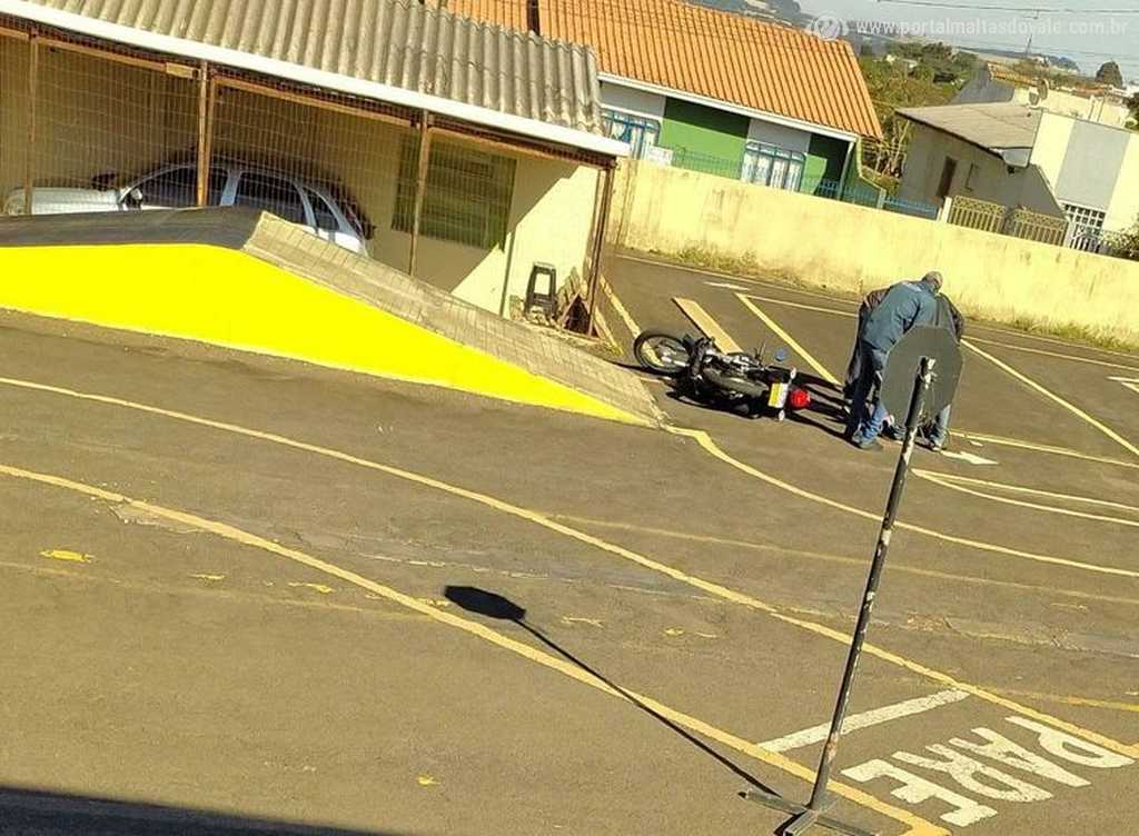 Jovem cai de moto na rampa da Ciretran e fica machucado