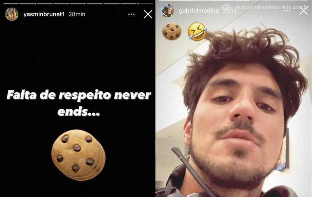 Brunet, por sua vez, também não ficou para trás. Publicou uma imagem com o emoji de um biscoito, além da legenda: "falta de respeito never ends", relembrando a frase inicial de Bufoni.