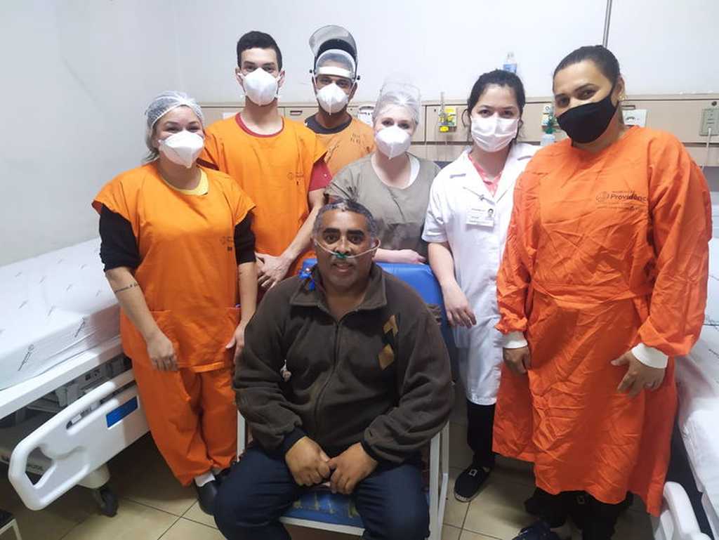 O paciente Nelson Souza Santos, após ficar 26 dias internado no setor exclusivo para tratamento Covid-19 do Hospital da Providência, sendo 20 dias na UTI, recebeu alta e já voltou para a casa.