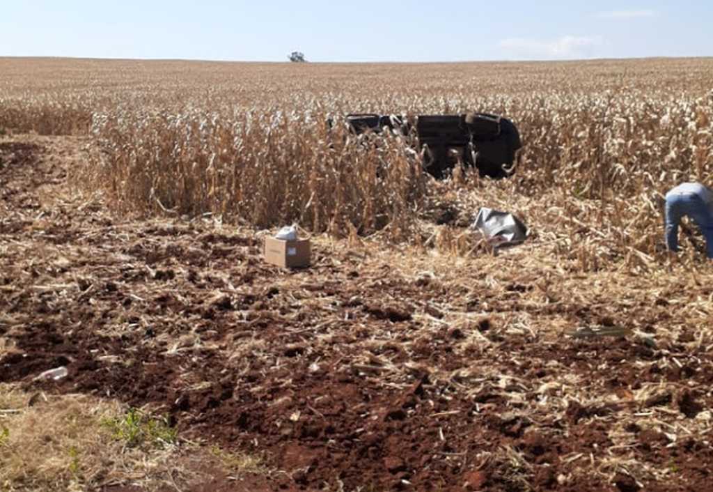 Na manhã deste sábado (7), uma caminhonete capotou em um milharal, às margens da PR-272, entre Dinizópolis, distrito de Cruzmaltina e o trevo de acesso á Borrazópolis.