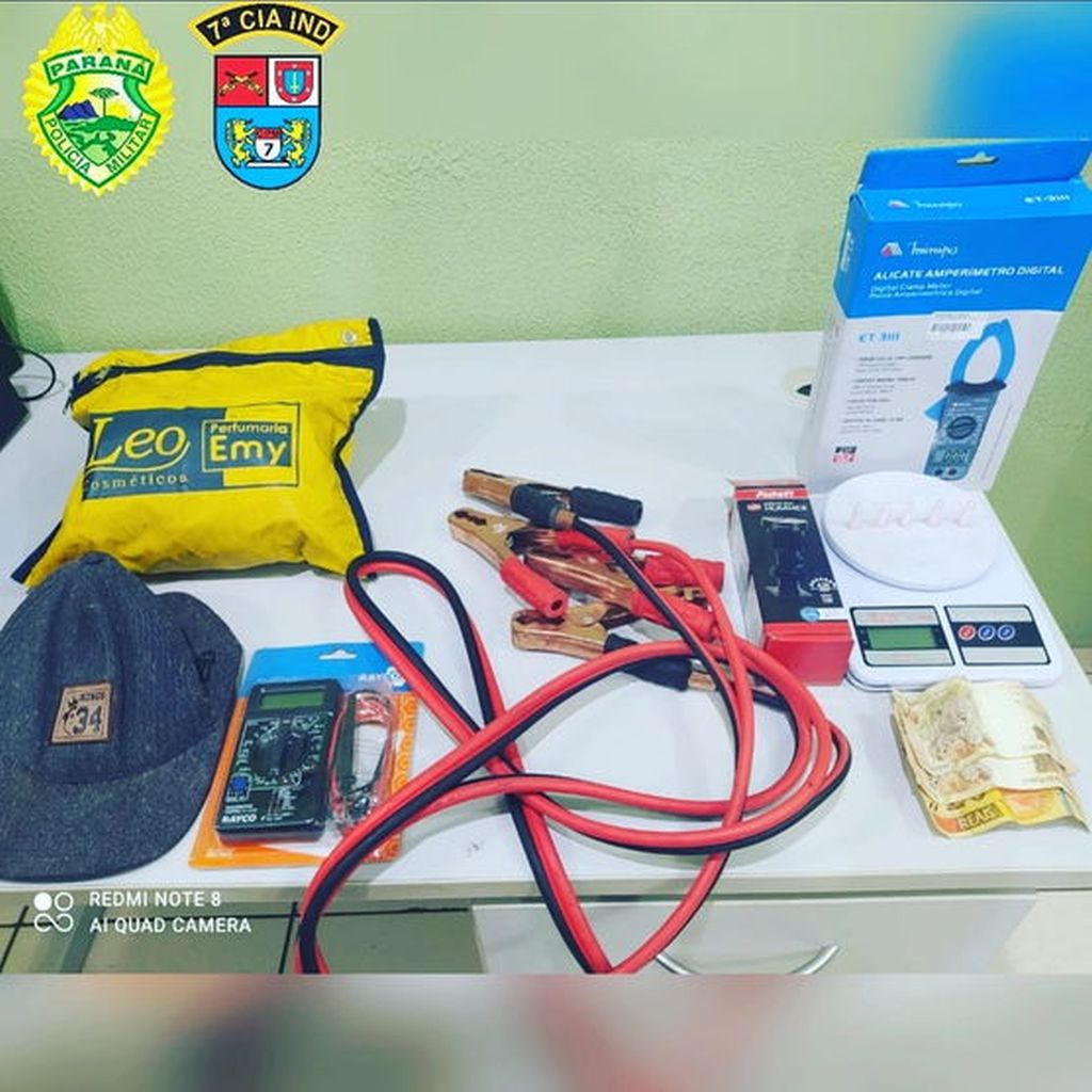 Na casa dele, dentro do forno, estava uma bolsa com objetos de furto e no forro foi encontrado um malote que tinha vários documentos de uma empresa, alvo de arrombamento no dia 10/03. Ele foi preso.