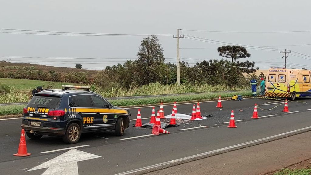 O motociclista ficou gravemente ferido e foi encaminhado para um hospital de Maringá pelo Samu Aéreo. A mulher que ocupava a garupa morreu no local. A moto tem placa de Marialva.