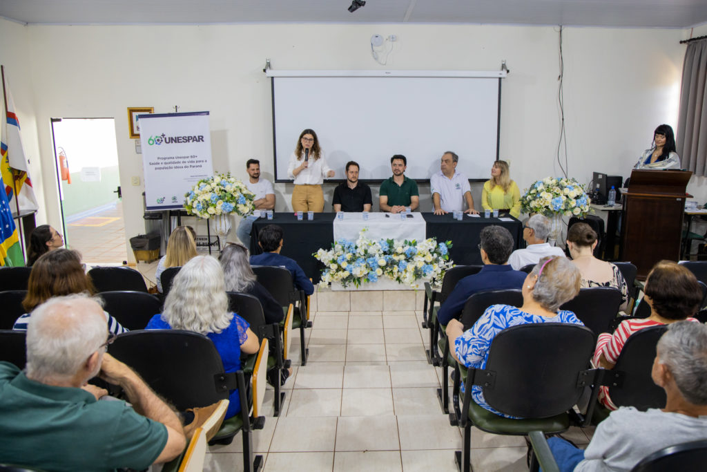 Na tarde desta quinta-feira (11), cerca de 30 estudantes, todos com mais de 60 anos, participaram da aula magna “Universidade e Envelhecimento: saberes em diálogo”, realizada no auditório José Berton, no campus apucaranense da Universidade Estadual do Paraná (Unespar). A atividade marcou oficialmente o início das ações do programa de extensão Universidade Aberta à Pessoa Idosa (UNAPI), desenvolvido pela instituição de ensino superior e pela Secretaria de Estado da Mulher, Igualdade Racial e Pessoa Idosa (Semipi), em parceria com a Prefeitura de Apucarana, por meio da Secretaria Municipal de Assistência Social e do Conselho Municipal da Pessoa Idosa.