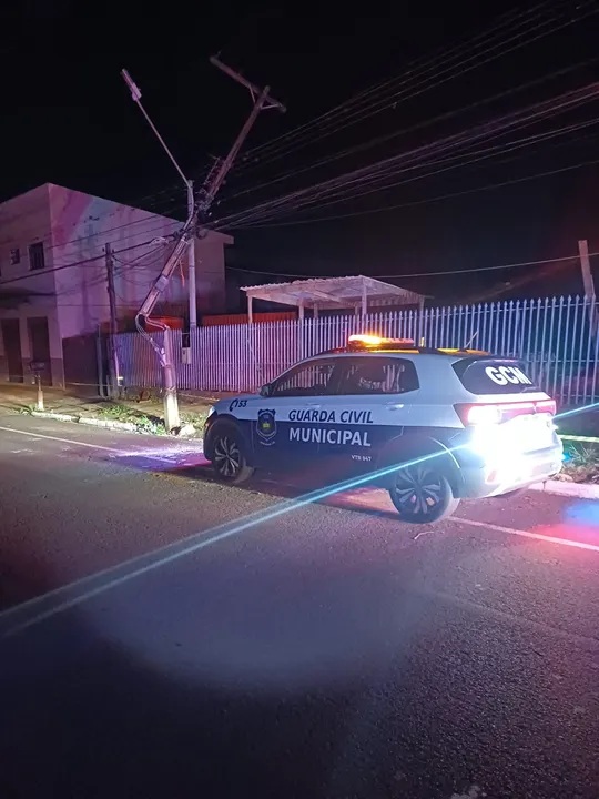Um poste foi quebrado a falta de energia afetou várias residências e a sede do Samu