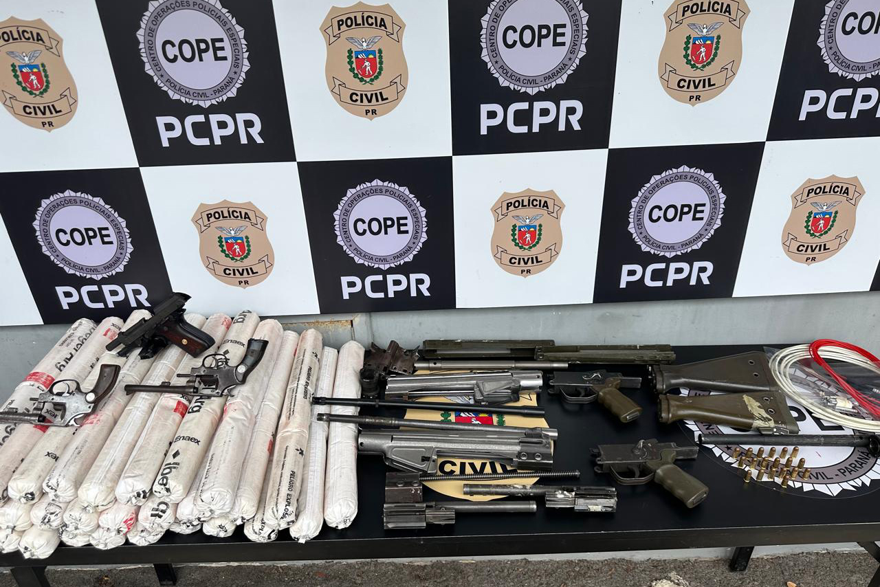 A Polícia Civil do Paraná (PCPR) apreendeu, neste sábado (29), cerca de 30 quilos de explosivos e armamentos em uma área de mata na região dos Jardins Holandeses, em Piraquara, na Região Metropolitana de Curitiba.